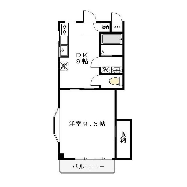 | 間取り | 1DK(洋室9.5 DK8) | 主要採光面 | 南東 |