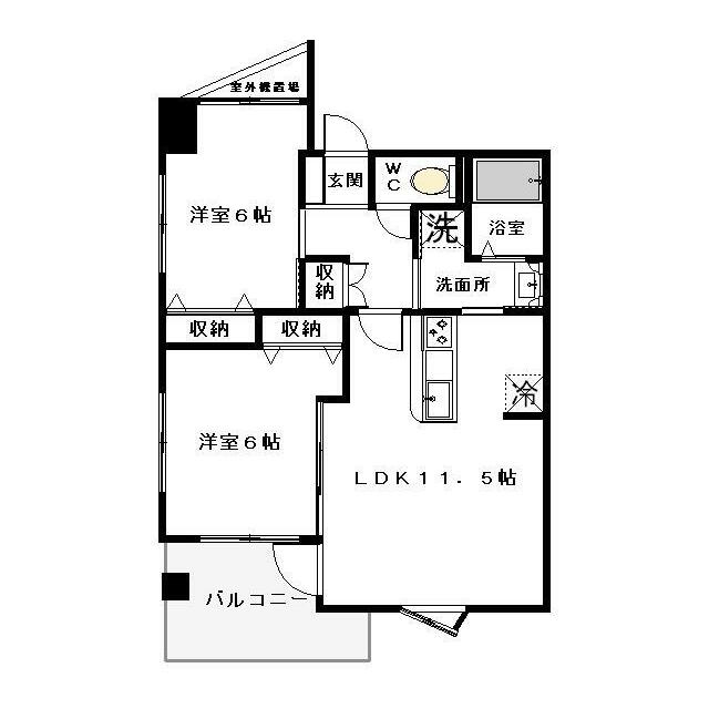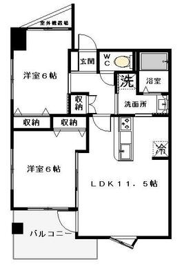 | 間取り | 2LDK(LDK11.5 洋室6 洋室6) | 主要採光面 | 南東 |