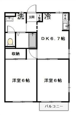 | 間取り | 2DK(DK6.7 洋室6 洋室6) | 主要採光面 | 南西 |